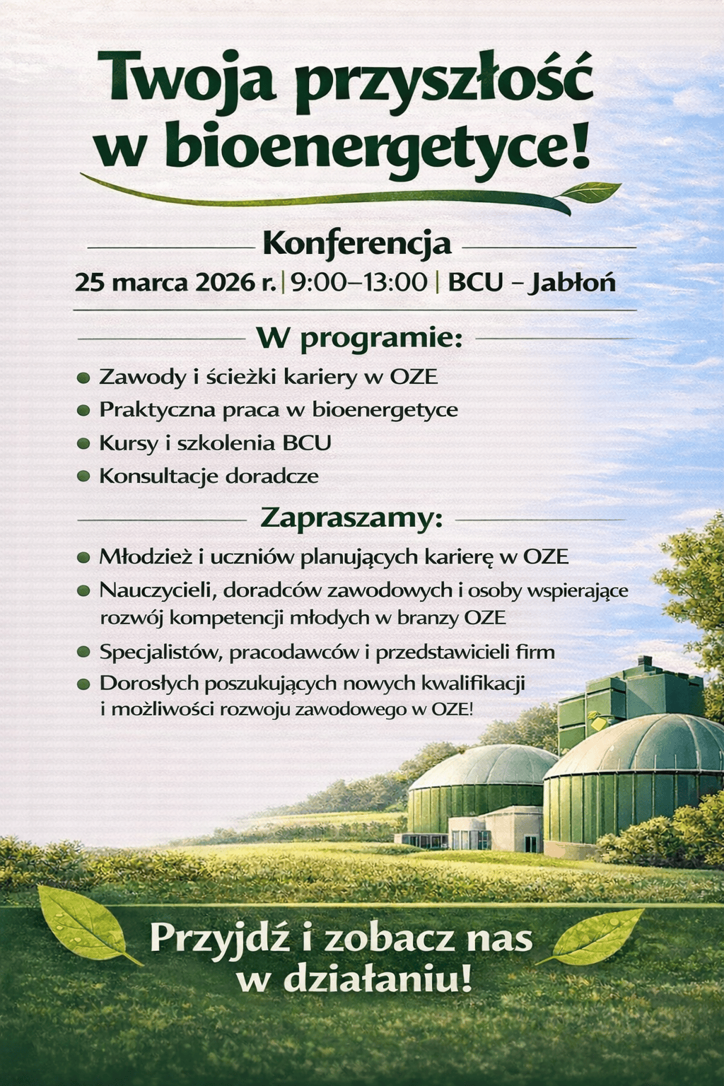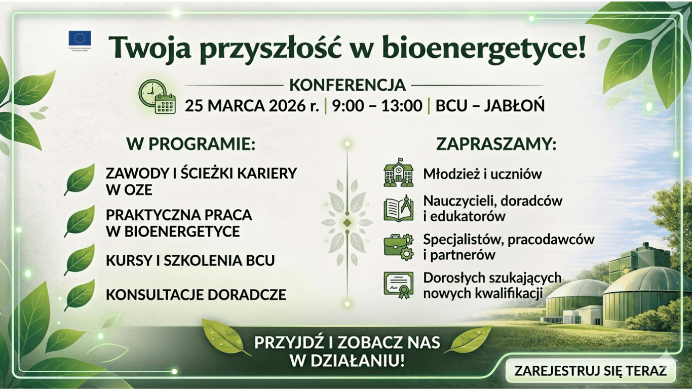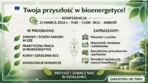 Już 25 marca 2026 r. w Branżowe Centrum Umiejętności – Bioenergetyka w Jabłoniu odbędzie się wyjątkowa konferencja poświęcona możliwościom rozwoju zawodowego w sektorze odnawialnych źródeł energii.